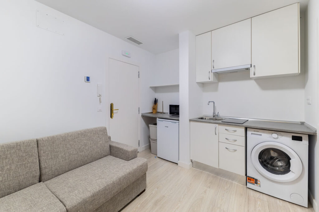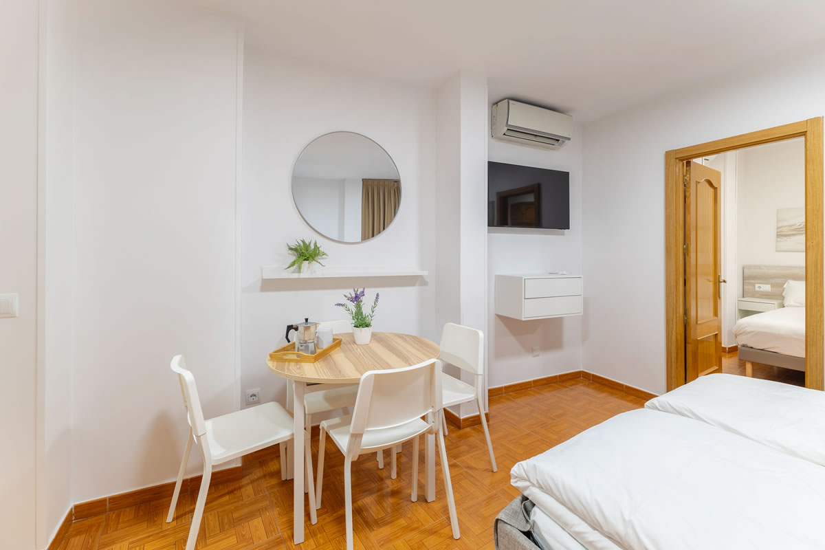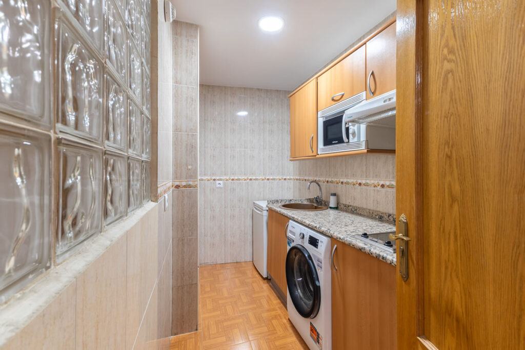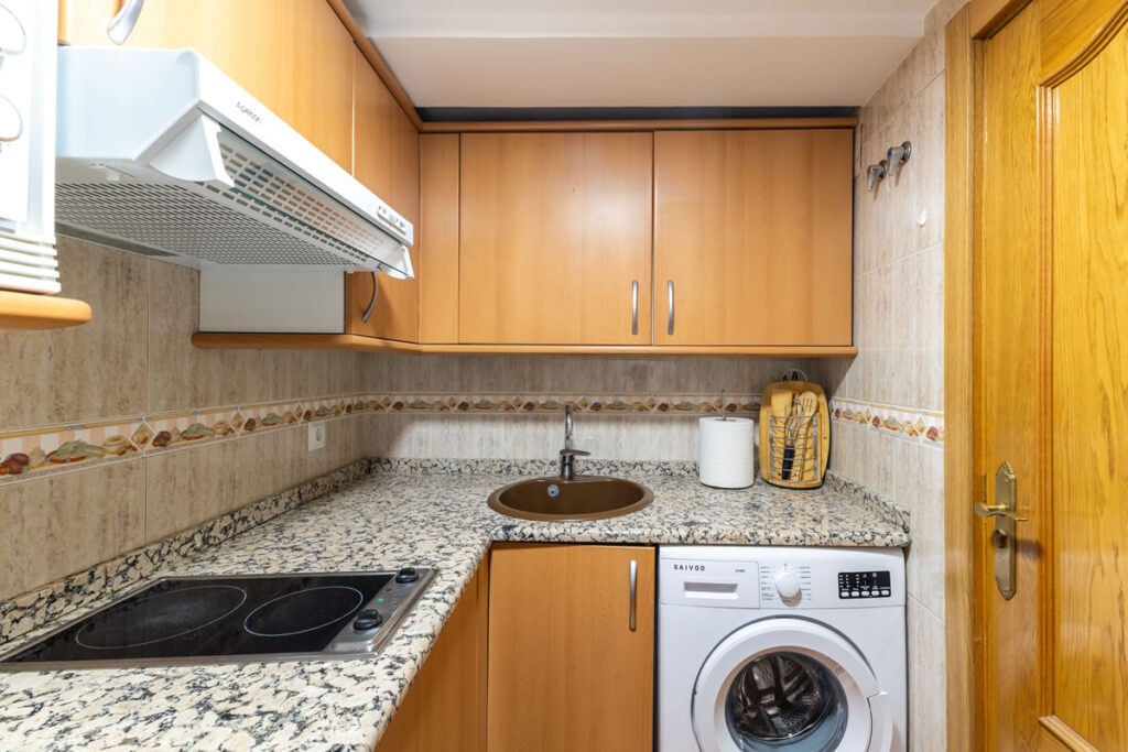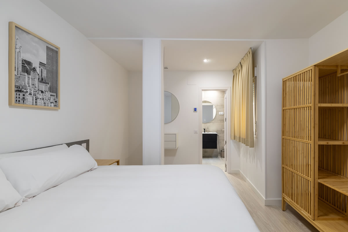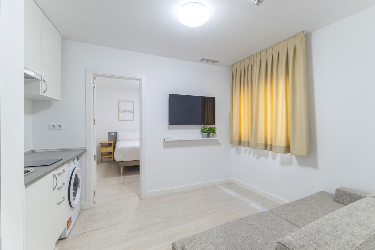 Este moderno apartamento con aire acondicionado dispone de un amplio salón, 1 dormitorio, baño privado y zona de cocina totalmente equipada con lavadora, vitrocerámica, nevera y microondas.