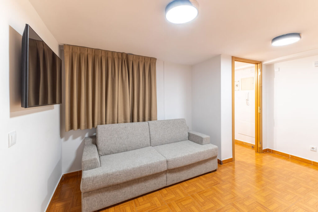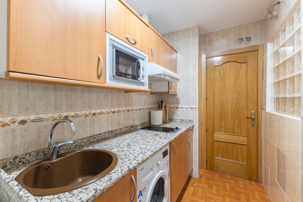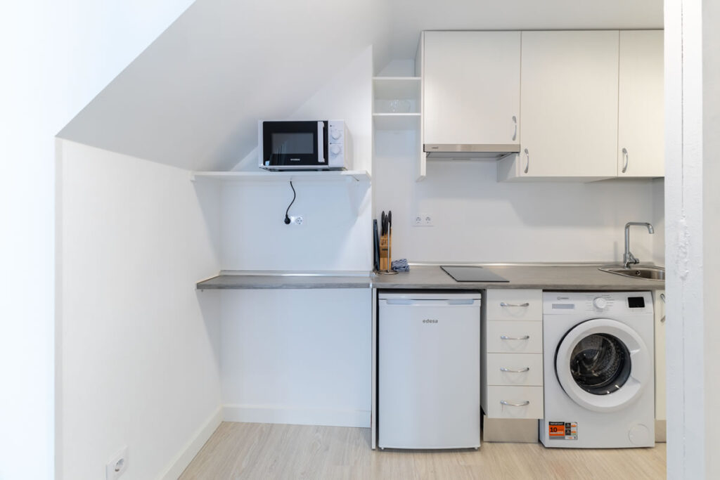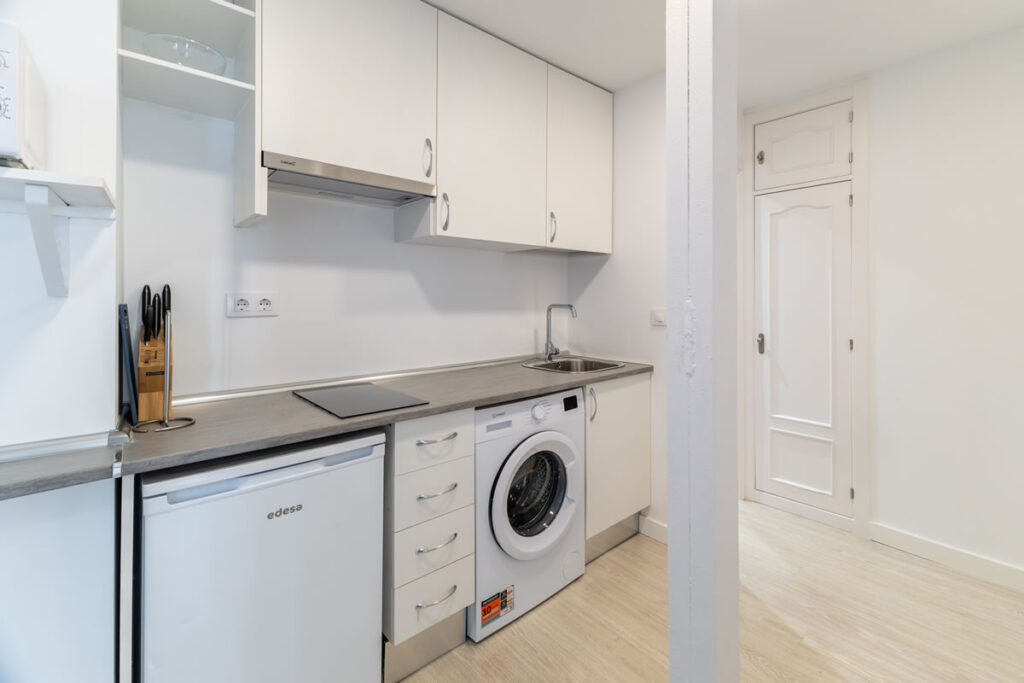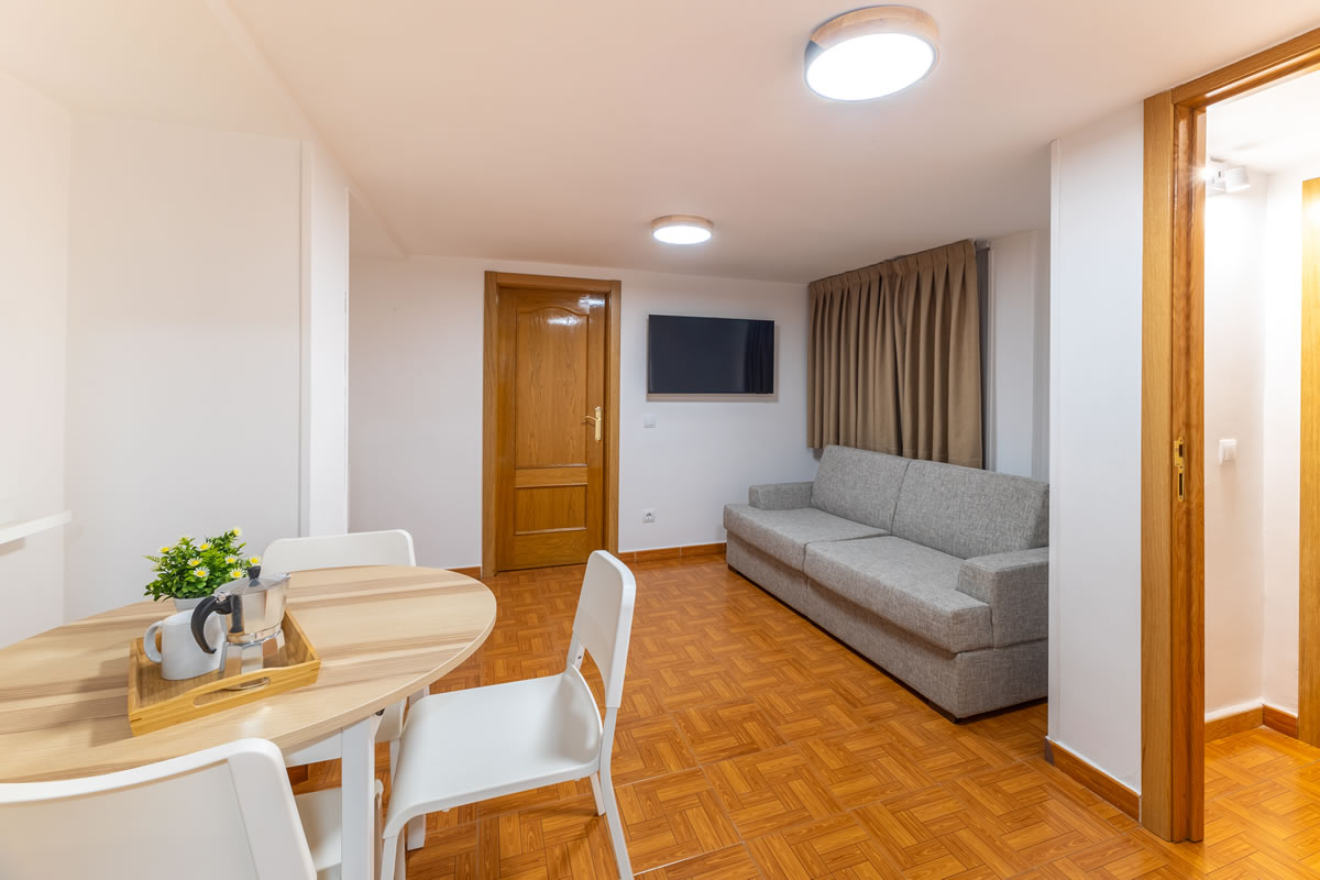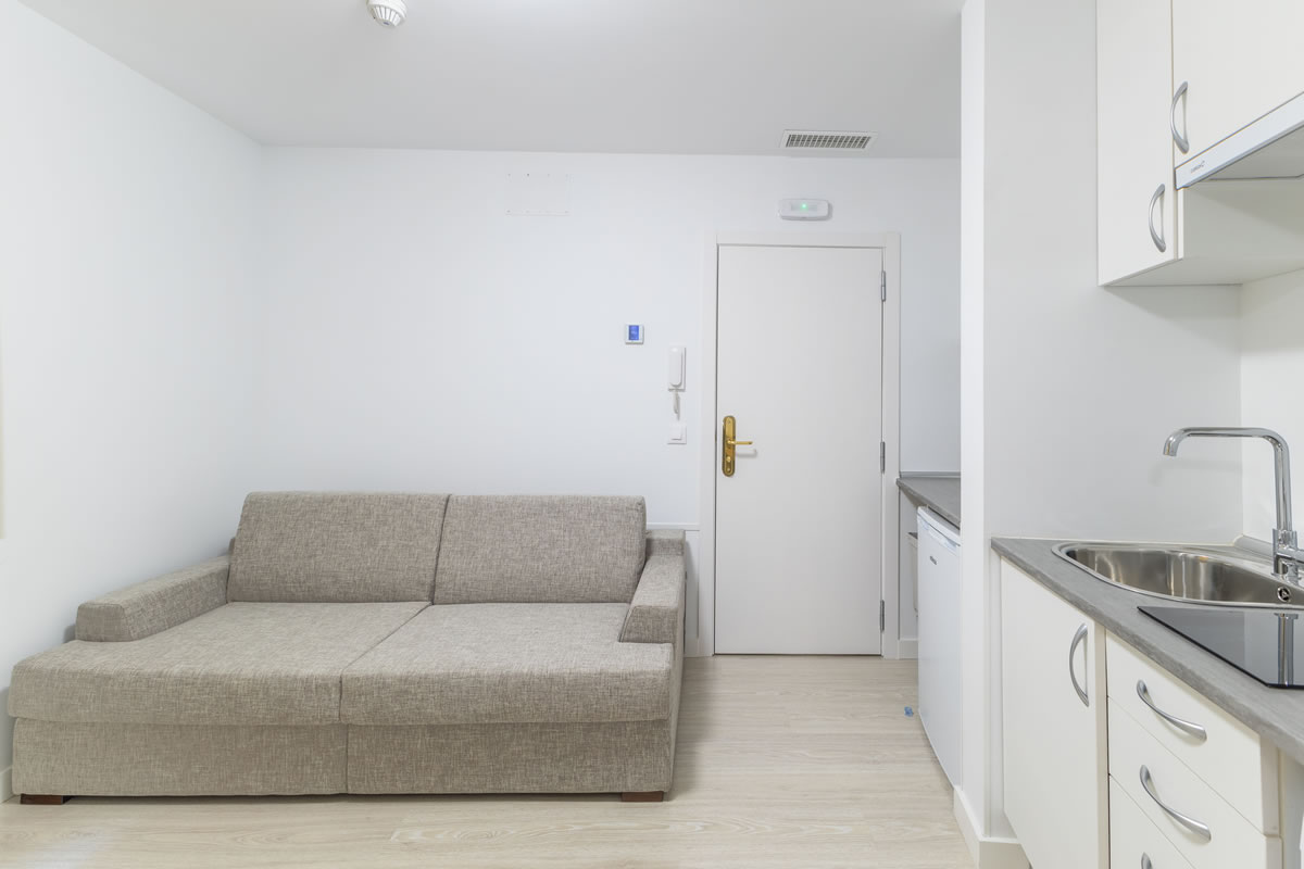 Este moderno apartamento con aire acondicionado dispone de un amplio salón, 1 dormitorio, baño privado y zona de cocina totalmente equipada con lavadora, vitrocerámica, nevera y microondas.